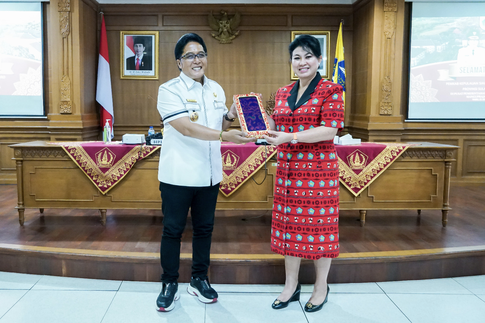 Atas nama pemerintah dan masyarakat Kabupaten Badung, Bupati Nyoman Giri Prasta mengucapkan terima kasih atas kunjungan kerja Bupati Pemkab Siau Tagulandang Biaro (Sitaro) Sulawesi Utara Evangelian Sasingen beserta Wakil Bupati dan segenap jajarannya, ke Pusat Pemerintahan Kabupaten Badung Mangupraja Mandala, Rabu (21/6). Melalui pertemuan ini, Bupati Giri Prasta berharap tali silaturahmi antara Pemerintah Kabupaten Kepulauan Sitaro dengan Pemerintah Kabupaten Badung semakin erat.
