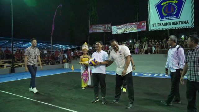 PORBA CUP III – Sekda Adi Arnawa saat membuka secara resmi acara Porba Cup III, bertempat di Lapangan Bola Voli Porba Banjar Babakan Canggu, Sabtu (1/4).