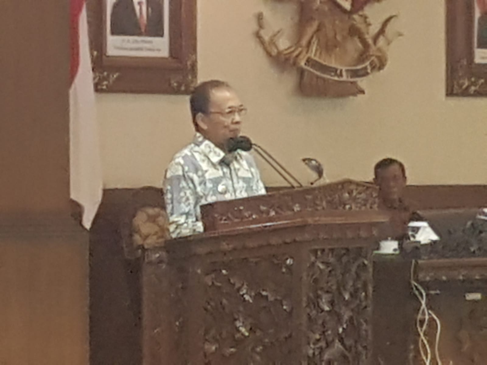 JAWABAN – Gubernur Wayan Koster memberikan jawaban terhadap pandangan umum fraksi-fraksi pada rapat paripurna DPRD Bali, Senin (19/6/2023).