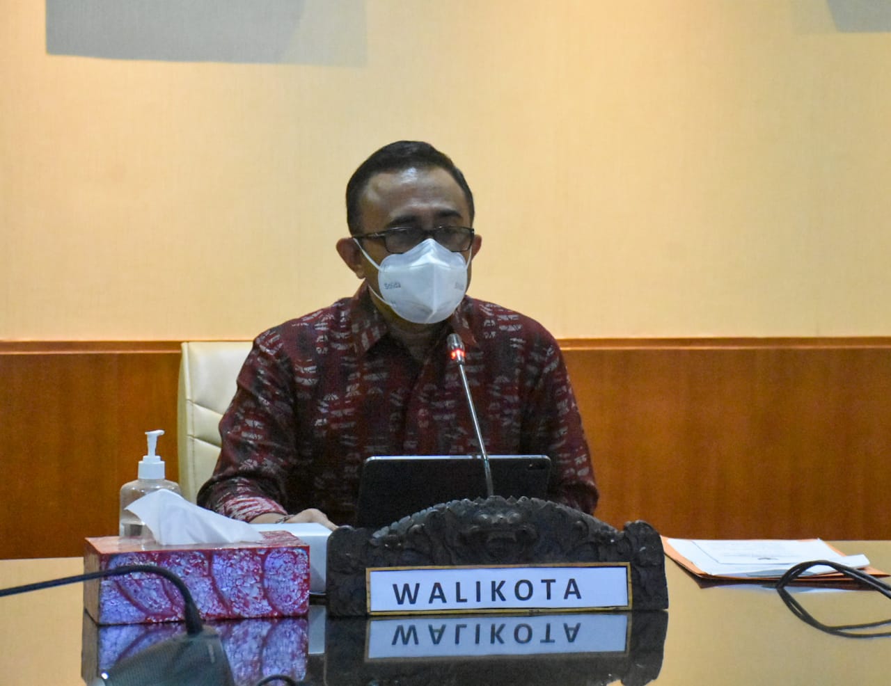 Walikota Denpasar I Gusti Ngurah Jaya Negara membuka secara resmi Rapat Teknis Partisipasi Dunia Usaha Dalam Pembangunan yang digelar secara virtual dari Kantor Walikota Denpasar, Selasa (7/9). Pelaksanaan kegiatan tersebut merupakan kerja sama guna mendukung optimalisasi pembangunan di Kota Denpasar pada masa pandemi covid-19.