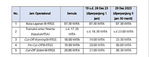 Kegiatan layanan kas akan dibuka kembali pada 2 Januari 2024 pada pukul 08.30-12.00 WITA dengan keterangan sebagai berikut. Layanan penukaran uang rusak setiap hari Kamis, pembelian uang Rupiah bersambung (uncute notes) setiap hari Senin, dan layanan klarifikasi uang rupiah yang diragukan keasliannya setiap Selasa dan Kamis.