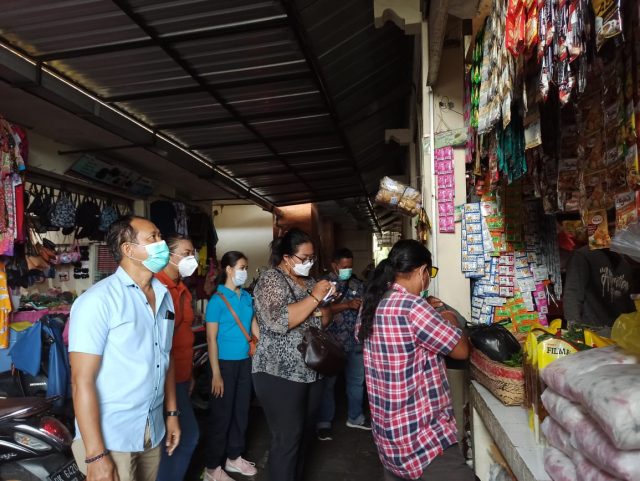 MONITORING – Disperindag Kota Denpasar melakukan monitoring terhadap kebutuhan pokok jelang Nataru, Senin (21/12/2020).