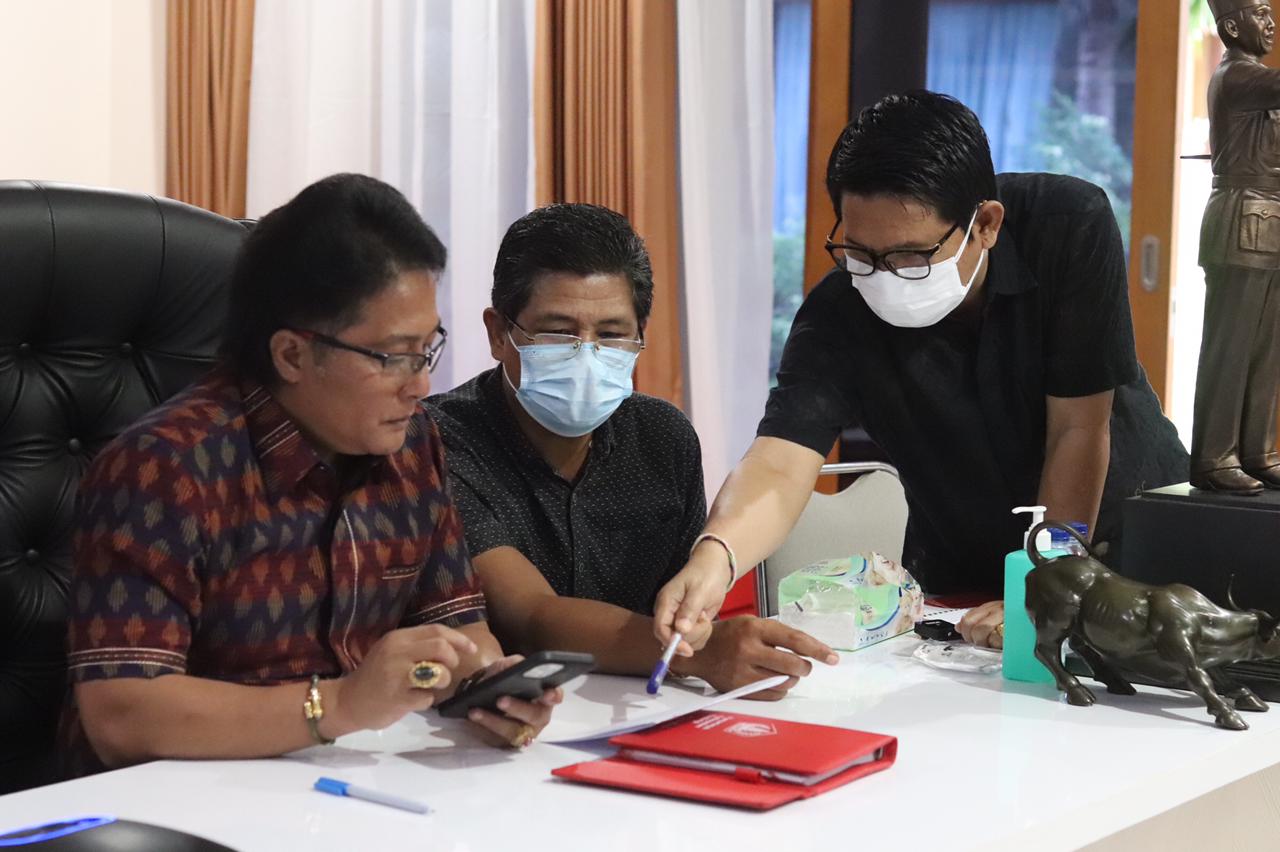 Sebelum dilaksanakannya penyaluran Bantuan Pangan Non Tunai (BPNT) dari pemerintah pusat melalui Kementerian Sosial (Kemensos) pada masa Pemberlakuan Pembatasan Kegiatan Masyarakat (PPKM) Darurat di Pulau Jawa dan Bali, Bupati Badung I Nyoman Giri Prasta mengikuti rapat koordinasi (rakor) dengan Kemensos secara virtual dari RJ Bupati Puspem Badung, Sabtu (17/7). Rakor yang dipimpin langsung oleh Menteri Sosial Tri Rismaharini didampingi Dirjen Perlindungan dan Jaminan Sosial Pepen Nazaruddin ini diikuti oleh bupati/walikota se-Jawa dan Bali.