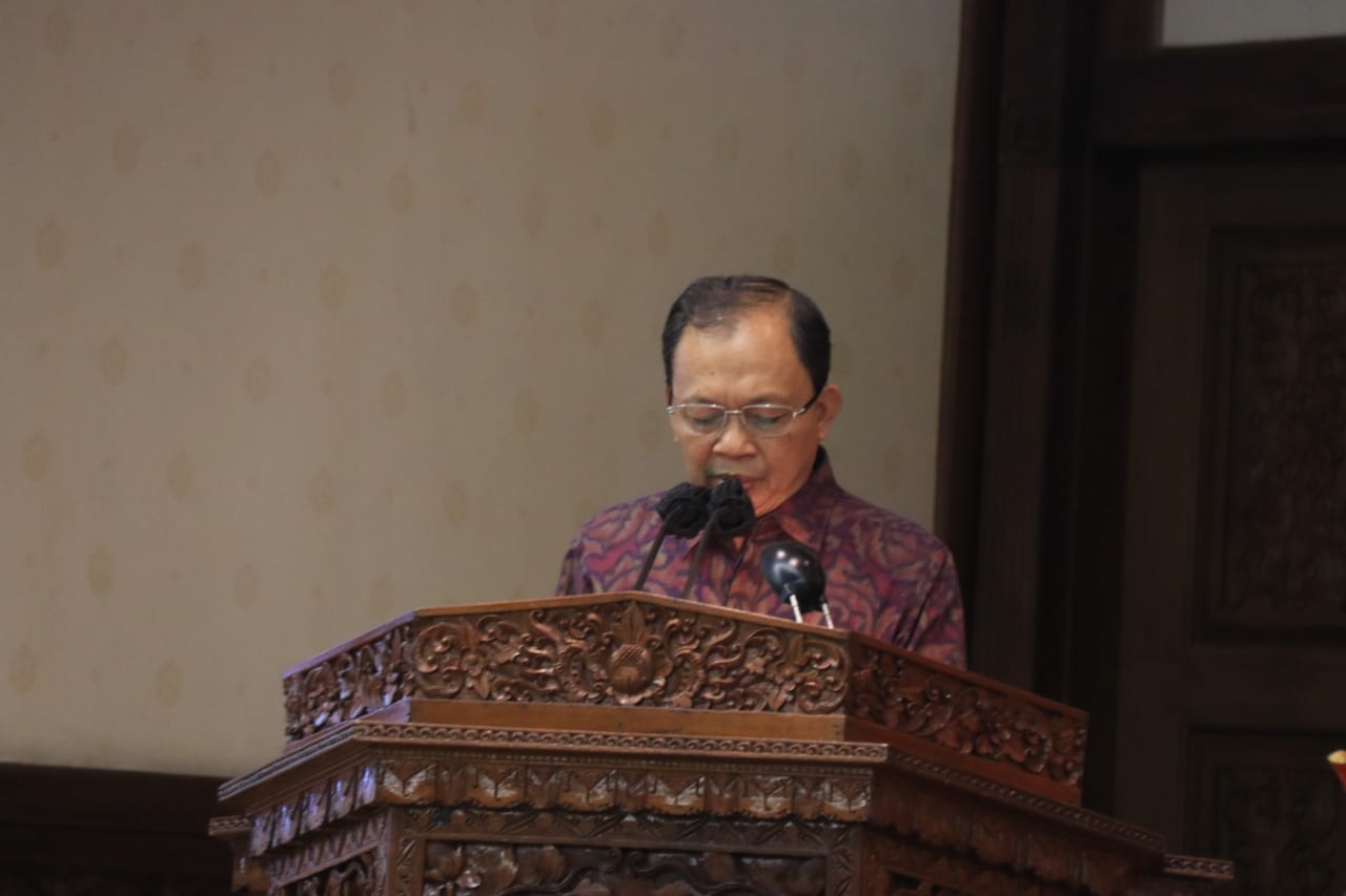 Gubernur Bali Wayan Koster dan Wakil Gubernur Bali Tjokorda Oka Artha Ardhana Sukawati menghadiri Rapat Paripurna DPRD Bali dengan agenda laporan dan sikap/keputusan Dewan terhadap pembahasan Raperda Perubahan Kedua atas Perda Nomor 10 Tahun 2016 tentang Pembentukan dan Susunan Perangkat Daerah dan Penyampaian Penjelasan Kepala Daerah terhadap Raperda APBD Semesta Berencana Provinsi Bali Tahun 2021 bertempat di Ruang Sidang Utama DPRD Provinsi Bali, Senin (9/11/2020).