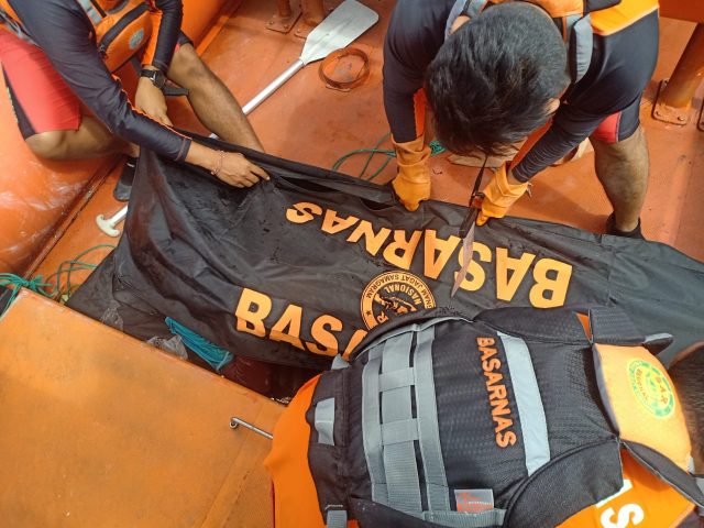 DITEMUKAN – Basarnas menemukan jenazah nelayan yang terhantam ombak di perairan Nusa Lembongan, Minggu (26/6/2022).