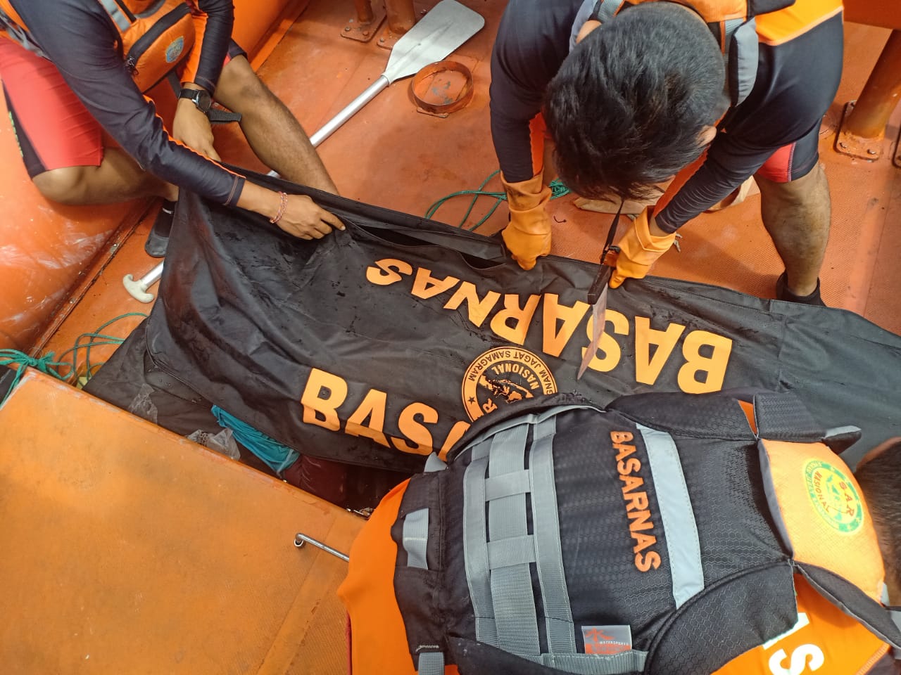Sesaat setelah mendapatkan informasi dari saksi mata, nelayan setempat mencari di seputaran sampan yang terbalik, namun nihil. Selanjutnya mereka hanya menarik sampan yang sudah terbalik itu untuk dibawa ke tepi. Tim dari Basarnas Unit Siaga SAR Nusa Penida juga menemukan jaring yang tersangkut.