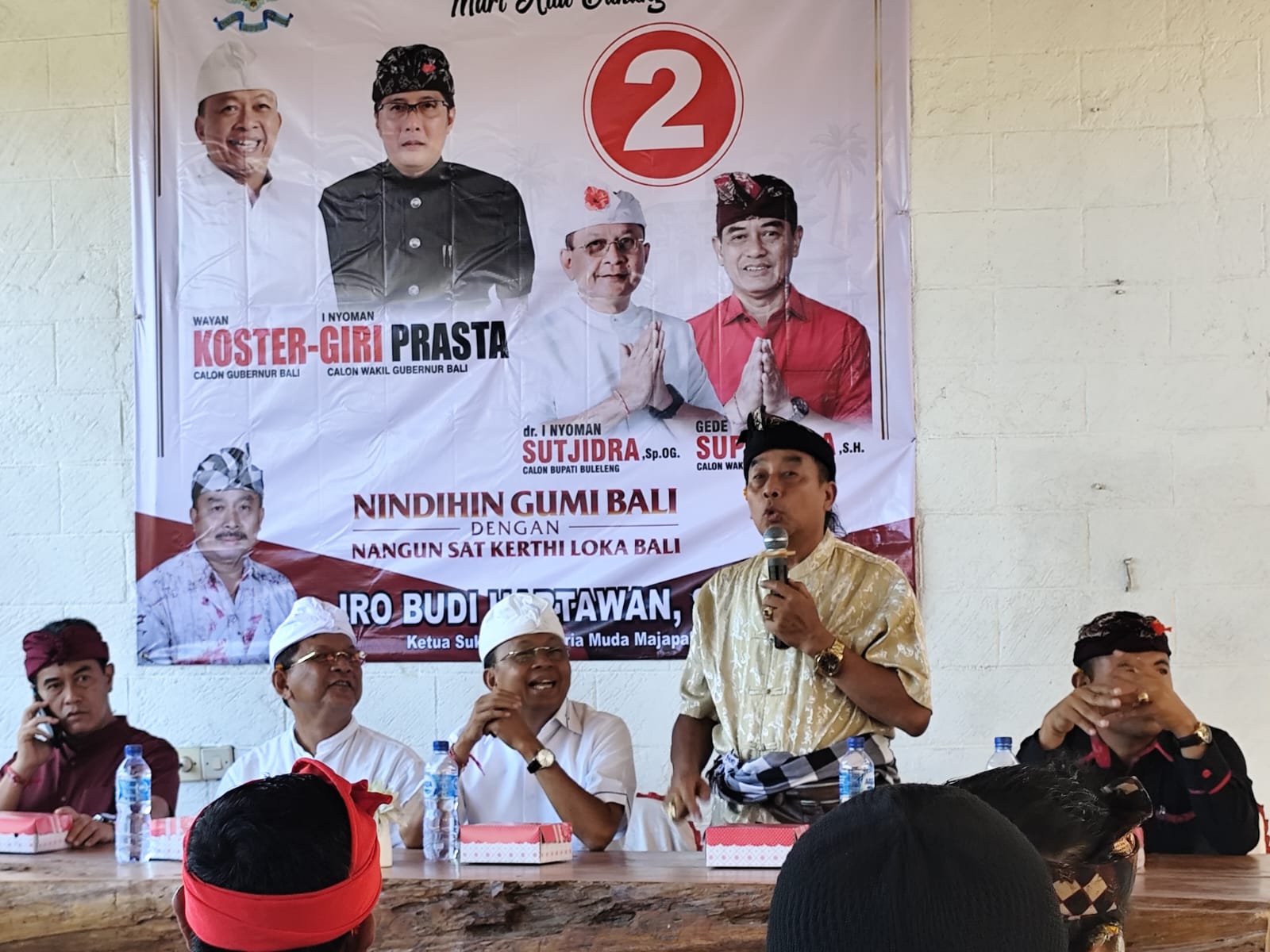 Tokoh masyarakat Buleleng Jro Budi Hartawan menegaskan, Calon Gubernur Bali Nomor Urut 2, Wayan Koster sebagai pemimpin yang telah terbukti kerja nyata untuk masyarakat Pulau Dewata. Sebagaimana diketahui Wayan Koster merupakan Gubernur Bali periode 2018-2023. Saat ini pria asal Buleleng ini maju kembali sebagai calon petahana.