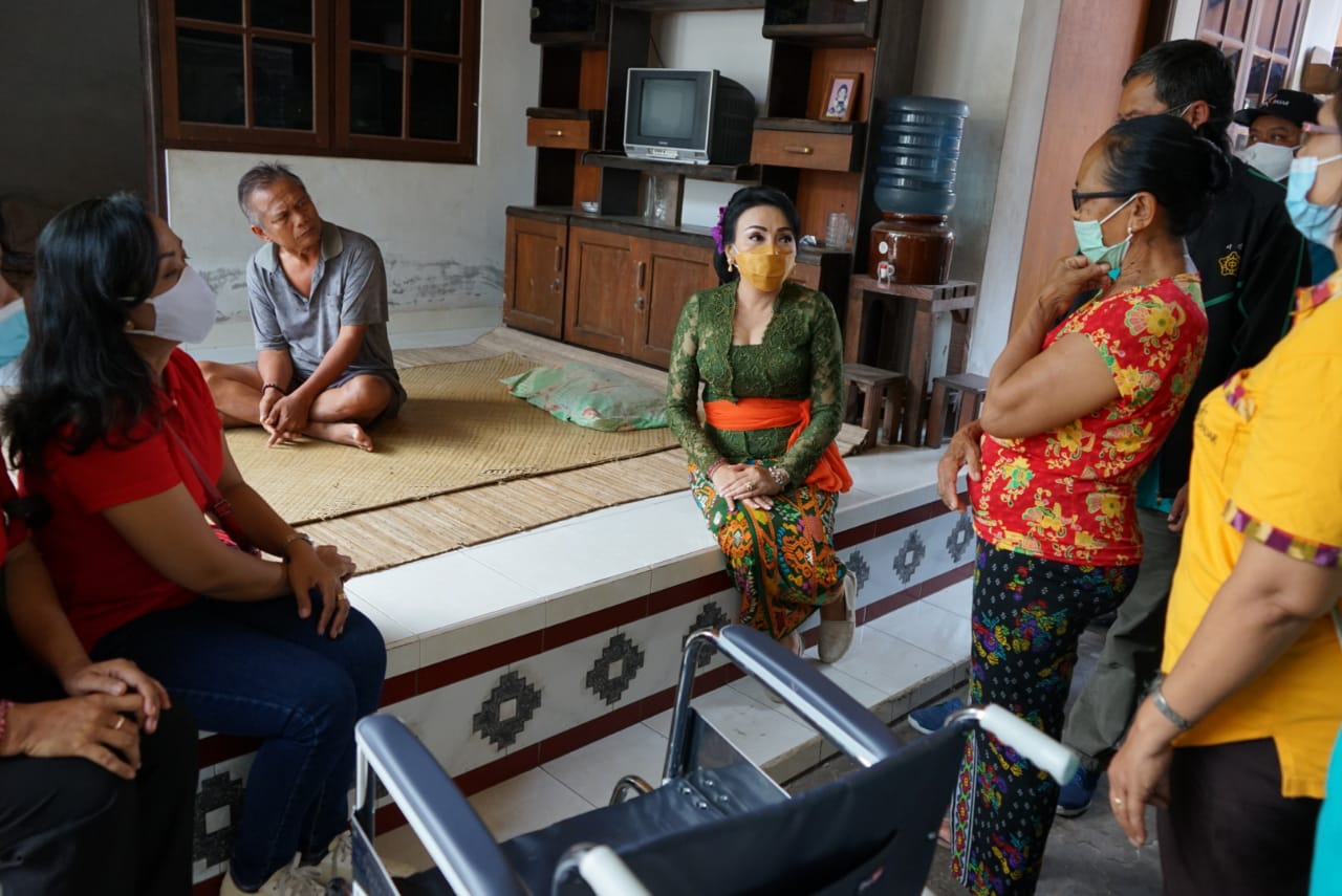 Koordinator Kegiatan Kesejahteraan Sosial (K3S) Kota Denpasar kembali menyerahkan bantuan berupa kursi roda, tongkat dan alat bantu dengar (ABD) kepada masyarakat yang membutuhkan. Pemberian bantuan yang dipimpin langsung Ketua K3S Kota Denpasar Ny. IA Selly Dharmawijaya Mantra menyasar warga secara estafet di beberapa lokasi, Jumat (20/11/2020).
