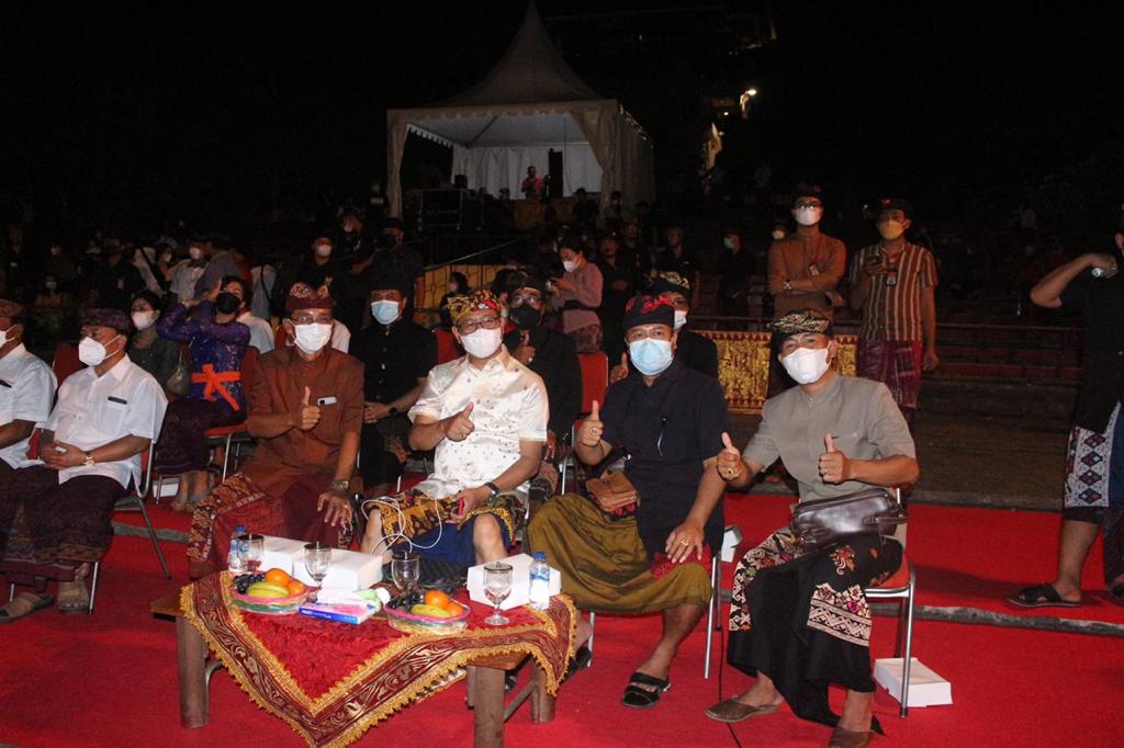Wakil Bupati Badung I Ketut Suiasa menghadiri perekaman pementasan virtual Lomba Bapang Barong Duta Kabupaten Badung di Ardha Candra, Art Center Denpasar, Minggu (6/6) malam lalu. Turut mendampingi Wabup, Kadis Kebudayaan Badung Gde Eka Sudarwitha, pejabat terkait di lingkungan Pemkab Badung serta undangan.