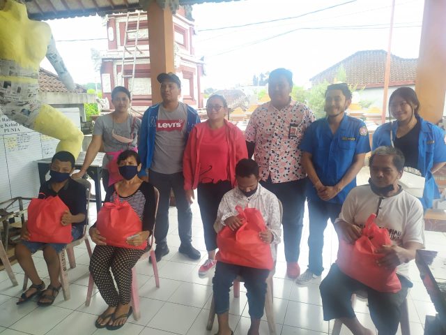 Usai pelantikan kepengurusan, Karang Taruna Sutamandala Kelurahan Peguyangan melaksanakan kegiatan sosial yakni menyerahkan bantuan sembako 100 paket kepada penyandang disabilitas dan anak yatim piatu di 13 banjar di Kelurahan Peguyangan, Sabtu (11/2).