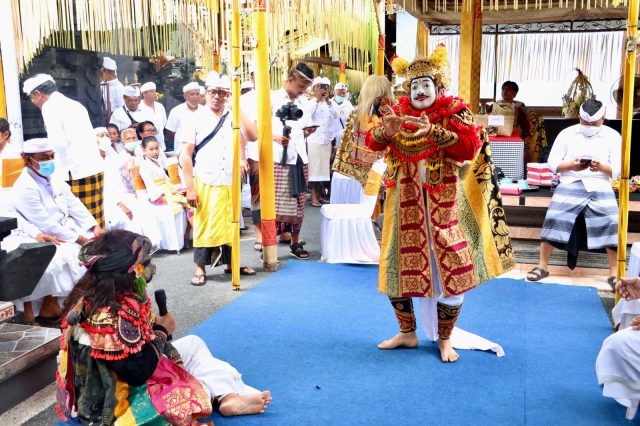 Bertepatan dengan Soma Pon Sinta, Walikota Denpasar, IGN Jaya Negara Ngayah Mesolah Topeng Arsa Wijaya serangkaian Karya Tawur Agung Nilapati, Ngenteg Linggih dan Padudusan Agung Menawa Ratna, Nyurud Ayu serta Metatah di Pura Batur Puncak Sari, Banjar Pengukuh Peraupan Desa Peguyangan Kangin, Senin (24/10). Sebelum upacara, diawali dengan alunan selonding, gong bheri tarian Rejang Dewa, Wayang Lemah, Topeng Keras, Topeng Tua, Topeng Penasar, Topeng Arsa Wijaya, dan Topeng Sidakarya.