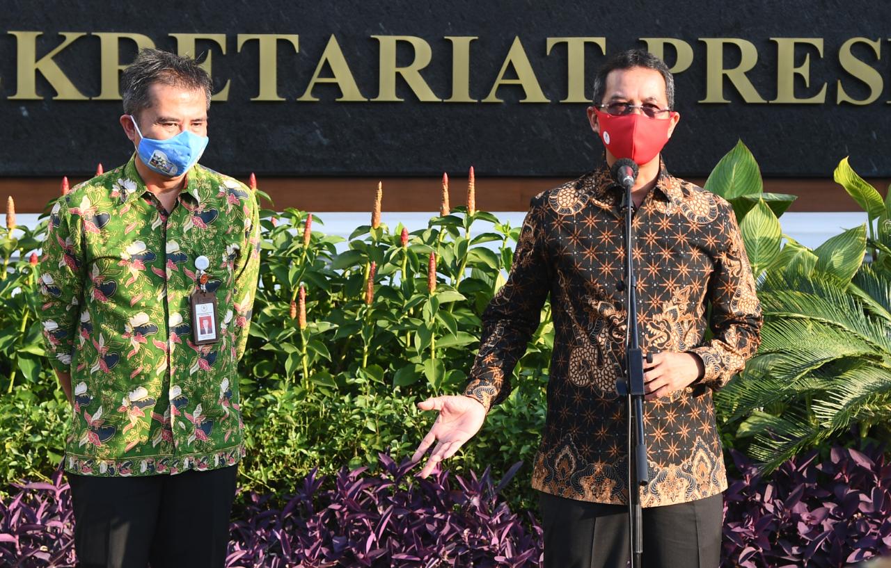Demikian disampaikan Kepala Sekretariat Presiden (Kesetpres) Heru Budi Hartono dalam keterangan persnya di halaman Istana Negara, Jakarta, pada Jumat, 24 Juli 2020. Pada kesempatan tersebut hadir pula Deputi Bidang Protokol, Pers, dan Media Sekretariat Presiden Bey Machmudin.