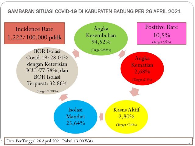 Pada Senin (26/4) hari ini ada tambahan 21 kasus positif/konfirmasi sehingga total kumulatif kasus positif/konfirmasi covid-19 di Kabupaten Badung kini menjadi 8.351 orang. Hal ini diungkapkan Koordinator Kehumasan GTPP Covid-19 Badung GN Jaya Saputra.