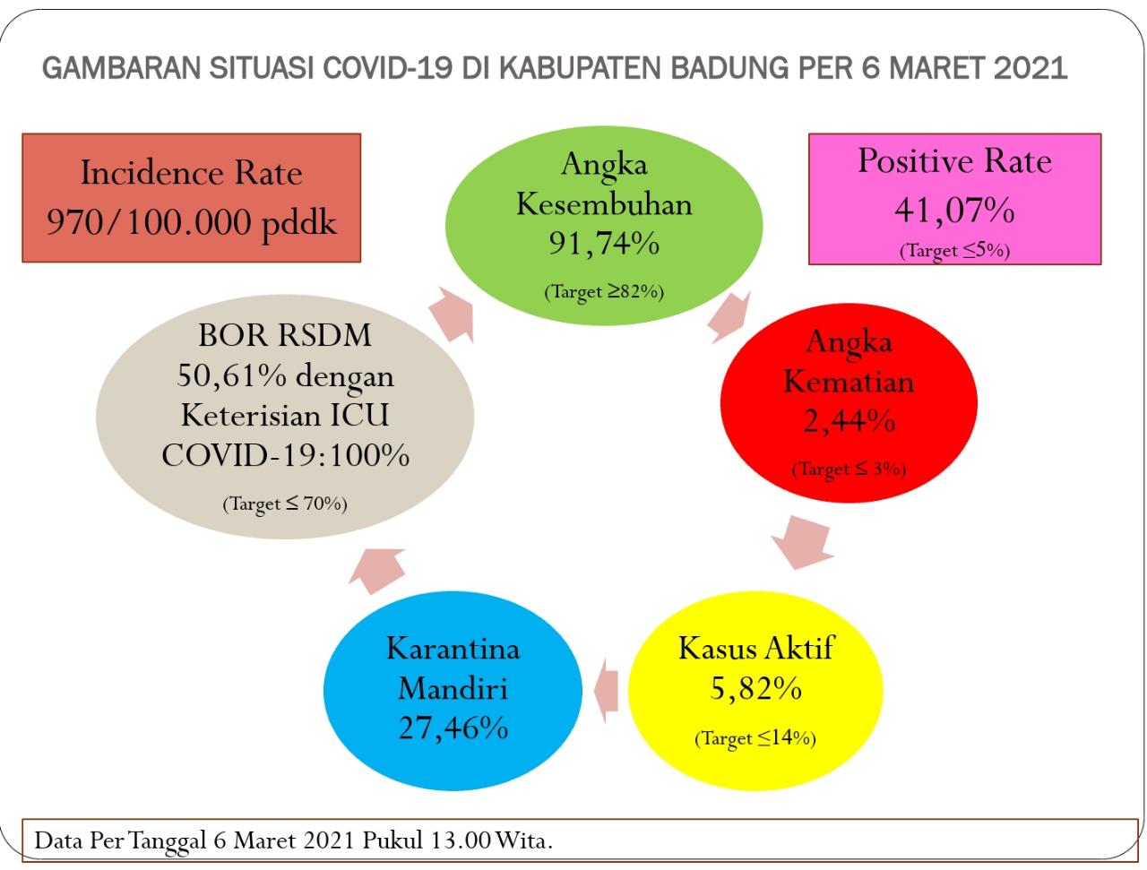 Pada Sabtu (6/3), hari ini ada tambahan 40 kasus positif/konfirmasi sehingga total kumulatif kasus positif/konfirmasi covid-19 di Kabupaten Badung kini menjadi 6.631orang. Hal ini diungkapkan Koordinator Kehumasan GTPP Covid-19 Badung GN Jaya Saputra.