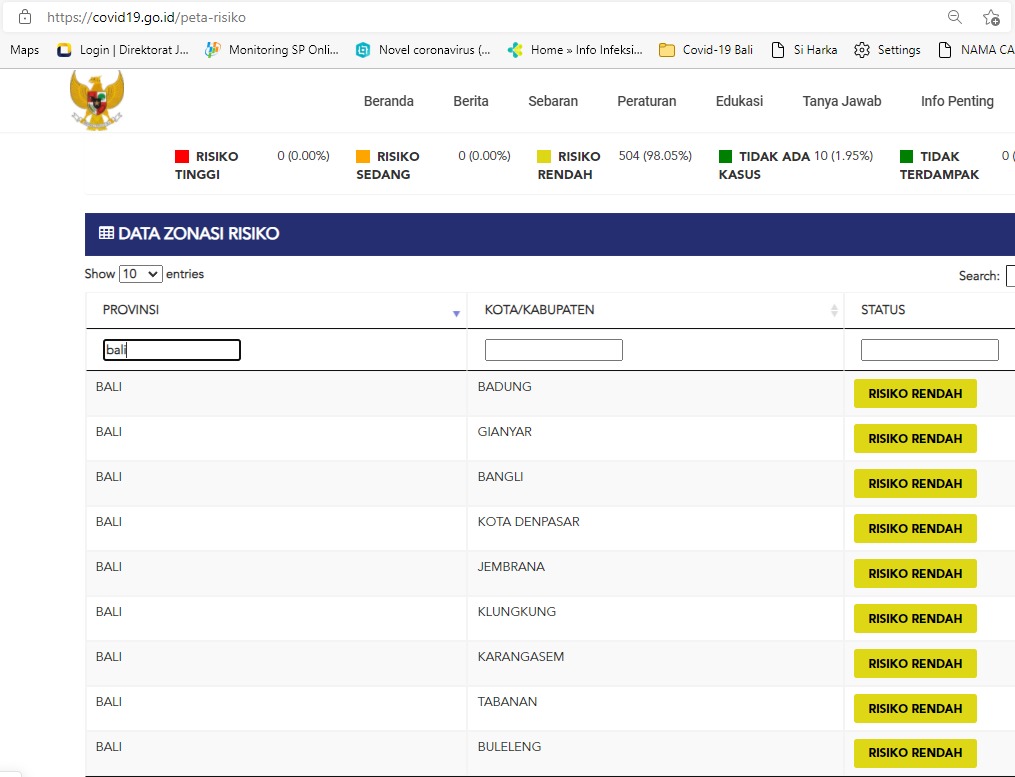 Delapan kabupaten dan satu kota di Bali masuk zone kuning dengan risiko rendah. Kesembilan kabupaten kota tersebut adalah Kabupaten Badung, Gianyar, Klungkung, Bangli, Tabanan, Kabupaten Jembrana, Karangasem, Buleleng, dan Kota Denpasar. (sar/hmbal)