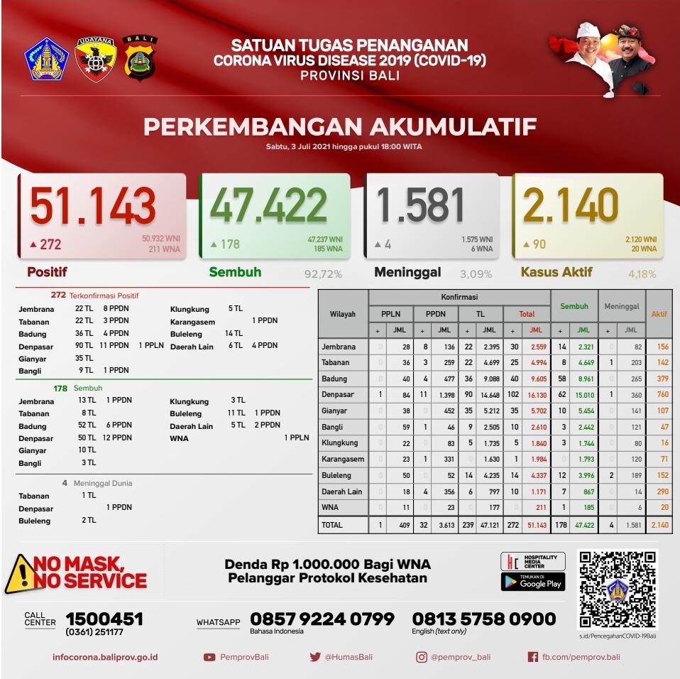 Beranda Another Region News Kasus Baru Covid-19 Bali Bertambah 272, Kasus Sembuh Bertambah 178 Orang