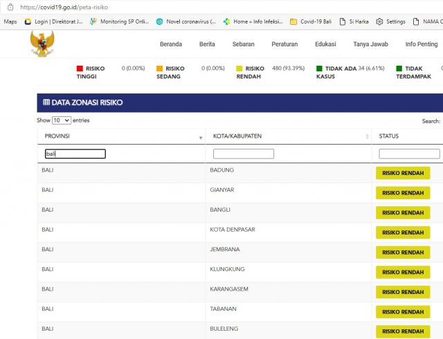 Delapan kabupaten dan satu kota di Bali masuk zone kuning dengan risiko rendah. Kesembilan kabupaten kota tersebut adalah Kabupaten Badung, Gianyar, Klungkung, Bangli, Tabanan, Kabupaten Jembrana, Karangasem, Buleleng, dan Kota Denpasar. (sar/hmbal)