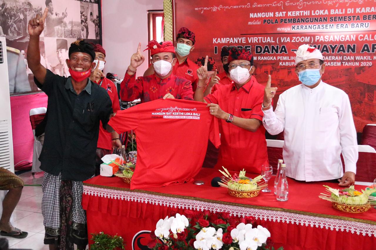 Deklarasi yang juga diikuti secara virtual oleh 30 kelompok tani, nelayan, tenun, dan UMKM di setiap kecamatan di Kabupaten Karangasem dengan menerapkan protokol kesehatan covid-19 ini dipimpin oleh Ketua Kelompok Nelayan Seraya, Kecamatan Karangasem, Made Suweca dengan menyatakan demi terlaksananya Nangun Sat Kerthi Loka Bali di Kabupaten Karangasem melalui Pola Pembangunan Semesta Berencana, menuju Karangasem Era Baru yang Pradnyan-Nadi, maka pasangan calon DANA-DIPA satu-satunya pilihan rakyat Karangasem.