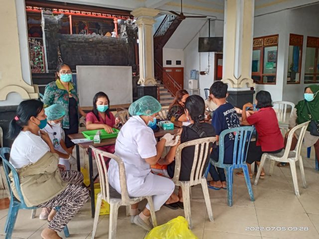Untuk mempercepat cakupan vaksinasi dosis 3 atau booster Pemkot kian gencar melakukan vaksinasi kepada masyarakat yang belum divaksinasi. Gerakan vaksin di masyarakat tetap digencarkan guna tetap memberikan perlindungan kesehatan kepada masyarakat. Seperti yang dilakukan Kelurahan Sesetan pada Selasa (5/7) menggelar kegiatan vaksin booster. Kegiatan ini berhasil membidik 122 orang warga dari target 150 orang.