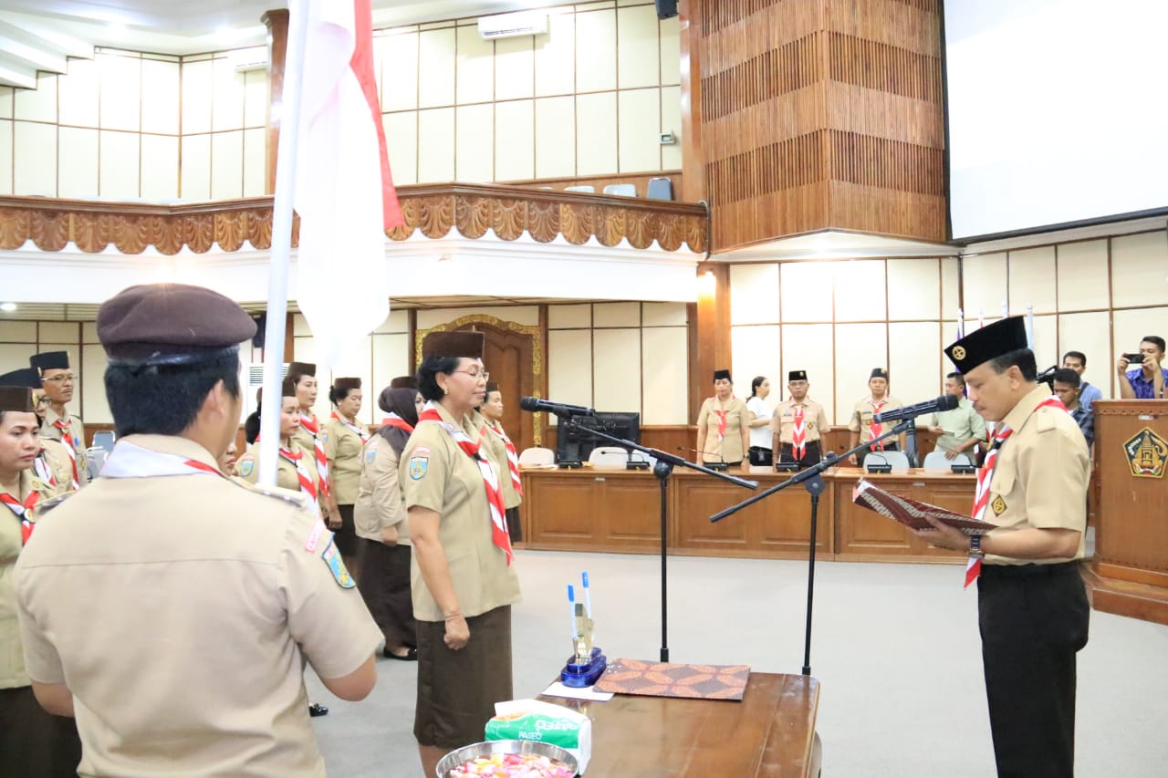 DILANTIK – Sekda Bali Dewa Made Indra saat melantik kepengurusan Saka POM di Gedung Wiswa Sabha Utama Kantor Gubernur Bali, Minggu (8/12/2019).