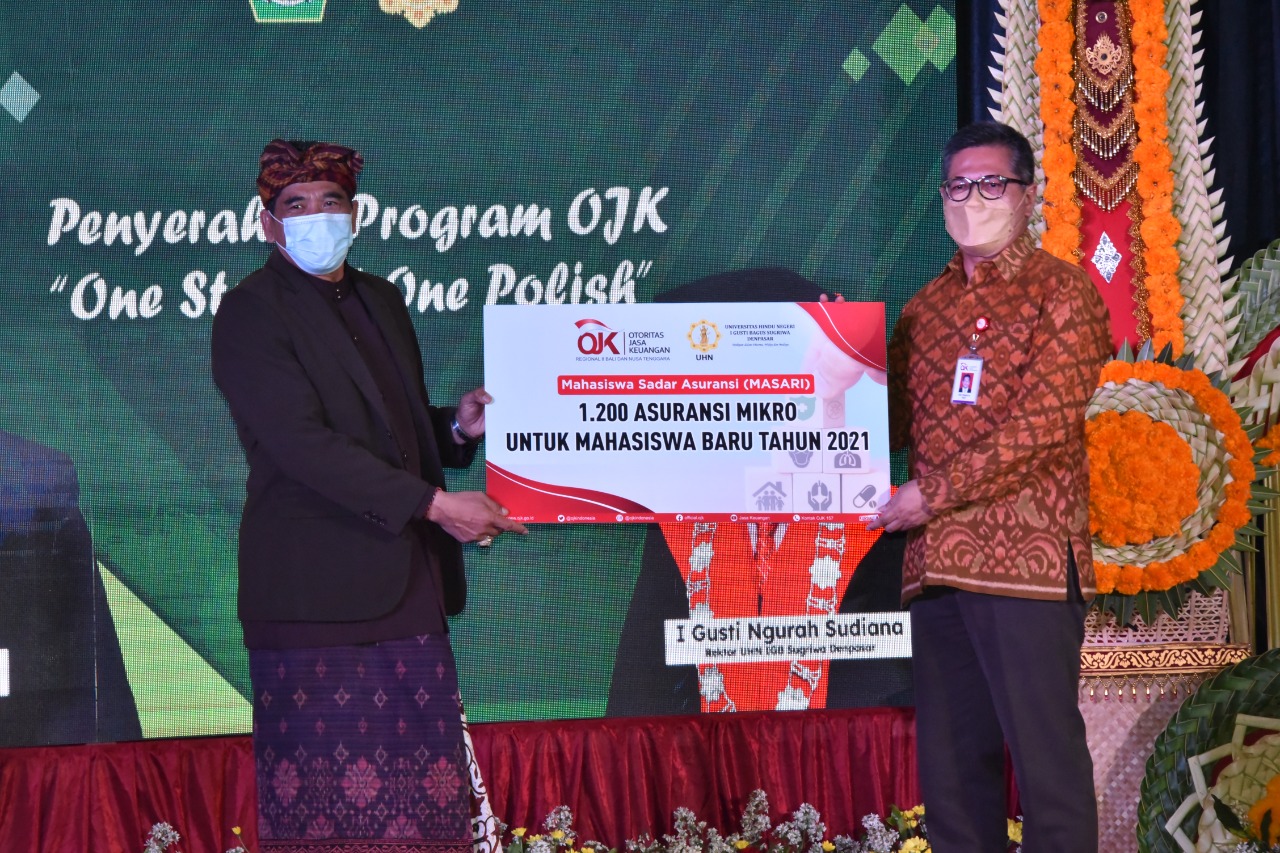Implementasi program ini berupa gerakan Satu Mahasiswa Satu Polis yang pertama kali dilaksanakan di Universitas Hindu Negeri I Gusti Bagus Sugriwa. Kepala OJK Regional 8 Bali dan Nusa Tenggara Giri Tribroto secara simbolis menyerahkan polis asuransi mikro kepada kurang lebih 1.200 mahasiswa baru angkatan tahun 2021 yang diterima oleh Rektor Universitas Hindu Negeri I Gusti Bagus Sugriwa Prof. Dr. Drs. I Gusti Ngurah Sudiana, M.Si.