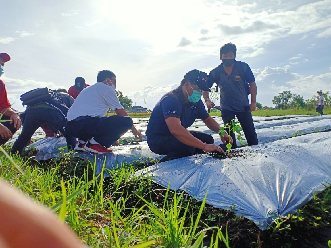 PADAT KARYA – Penanaman pepaya california untuk program padat karya secara swakelola di Desa Kesiman Kertalangu.