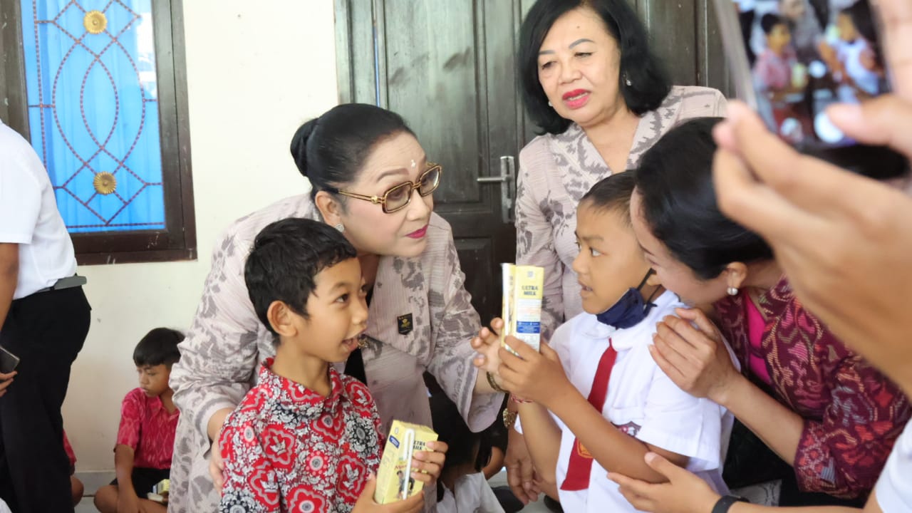 Selain melakukan anjangsana, di hari yang sama setelah melaksanakan dialog dan diskusi di Gedung Bhukti Mukti Bhakti Kantor Bupati Bangli, Ketua BKOW Provinsi Bali Ny. Tjok Putri Hariyani Ardhana Sukawati dan rombongan yang didampingi oleh Ketua GOW Kabupaten Bangli Ny. Suciati Diar mengunjungi Stand Pameran Sekolah Luar Biasa (SLB) Negeri 1 Bangli sekaligus menyerahkan sejumlah paket sembako, camilan berupa makanan dan susu untuk 130 siswa. Selanjutnya rombongan melanjutkan kunjungan kerjanya ke tempat pengolahan loloh cemcem Men Nyampuh di wilayah Desa Penglipuran. (sar)