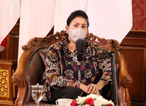 WAWANCARA – Ketua Dekranasda Bali Putu Putri Suastini Koster saat tapping wawancara dalam acara Mantra Hati dan Filsafat Bali, Sabtu (17/10/2020).