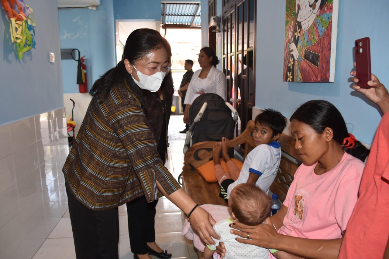 Sebelum acara dimulai, Ketua K3S Kota Denpasar Ny. Sagung Antari Jaya Negara dan Wakil Ketua Ny. Ayu Kristi Arya Wibawa meninjau keadaan anak-anak yang mendapat bantuan di yayasan tersebut.