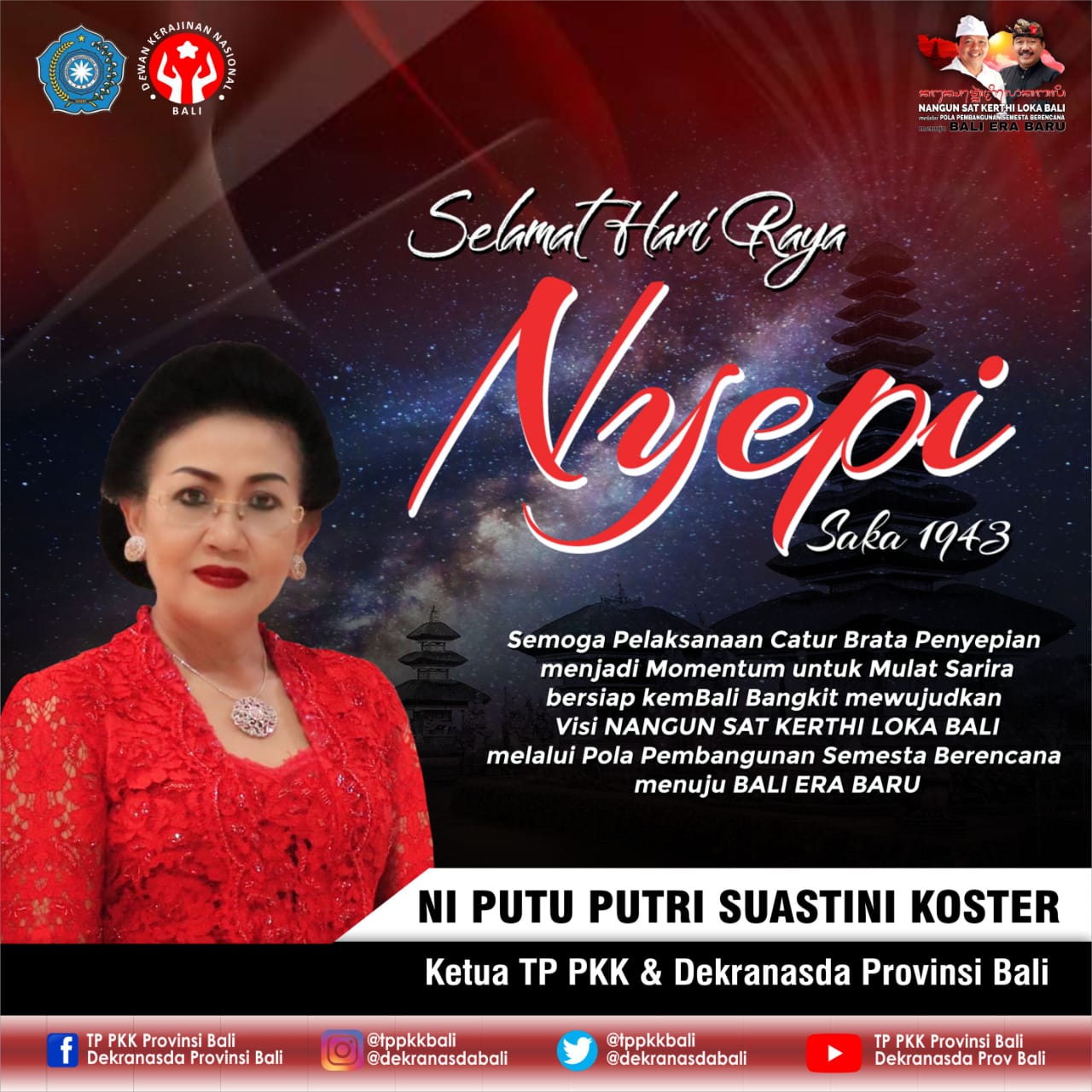 Beranda Another Region News Ketua TP PKK dan Dekranasda Bali Ucapkan Selamat Hari Raya Nyepi Tahun... Another Region NewsBali NewsBerita Utama Ketua TP PKK dan Dekranasda Bali Ucapkan Selamat Hari Raya Nyepi Tahun Saka 1943 Penulis BaliViralNews - Maret 13, 2021 FacebookTwitterPinterestWhatsApp Baca Juga Beri Pembekalan PAKIS, Putri Koster Ajak Perempuan Bali Jadi Agen Sosialisasi Pemahaman Tugas dan Kewajiban sebagai "Krama"