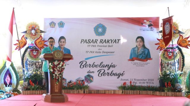 Sementara itu, Ketua TP PKK Kota Denpasar Sagung Antari Jaya Negara menyampaikan selamat datang kepada ketua serta jajaran pengurus TP PKK Provinsi dan Kabupaten/Kota se-Bali pada acara pasar rakyat Kota Denpasar.