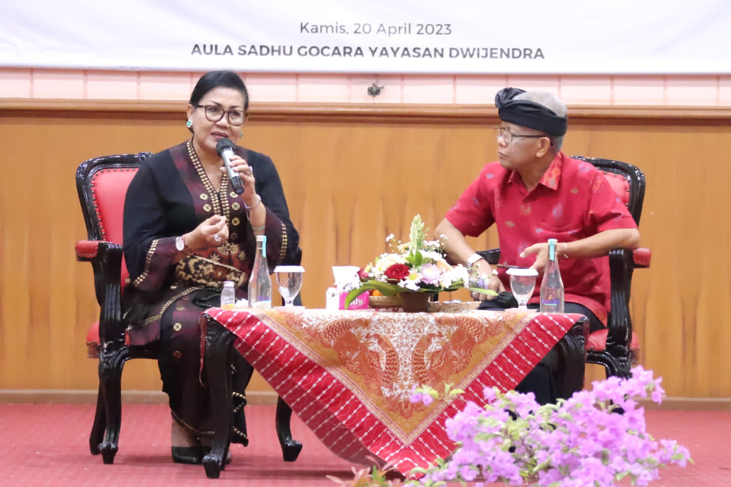 Ketua TP PKK Provinsi Bali Ny. Putri Koster berkesempatan menjadi narasumber pada acara talk show dengan tema “Meningkatkan Peran Ibu dalam Menjadikan Anak yang Suputra”, bertempat di aula Sadhu Gocara Yayasan Dwijendra Denpasar, Denpasar pada Kamis (Wraspati Umanis, Ugu), 20 April 2023.