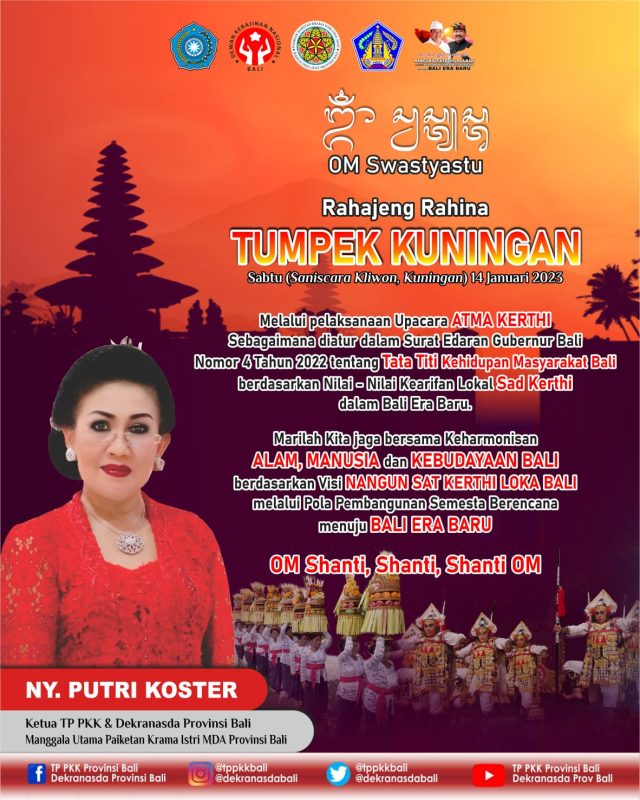 Beranda Another Region News Ketua TP PKK Provinsi Bali Ny. Putri Koster Ucapkan Selamat “Tumpek Kuningan” Another Region NewsBali NewsBerita Utama Ketua TP PKK Provinsi Bali Ny. Putri Koster Ucapkan Selamat “Tumpek Kuningan” Penulis BaliViralNews - Januari 14, 2023 FacebookTwitterPinterestWhatsApp Baca Juga Pengembangan Pelabuhan Benoa Tuntas 2023