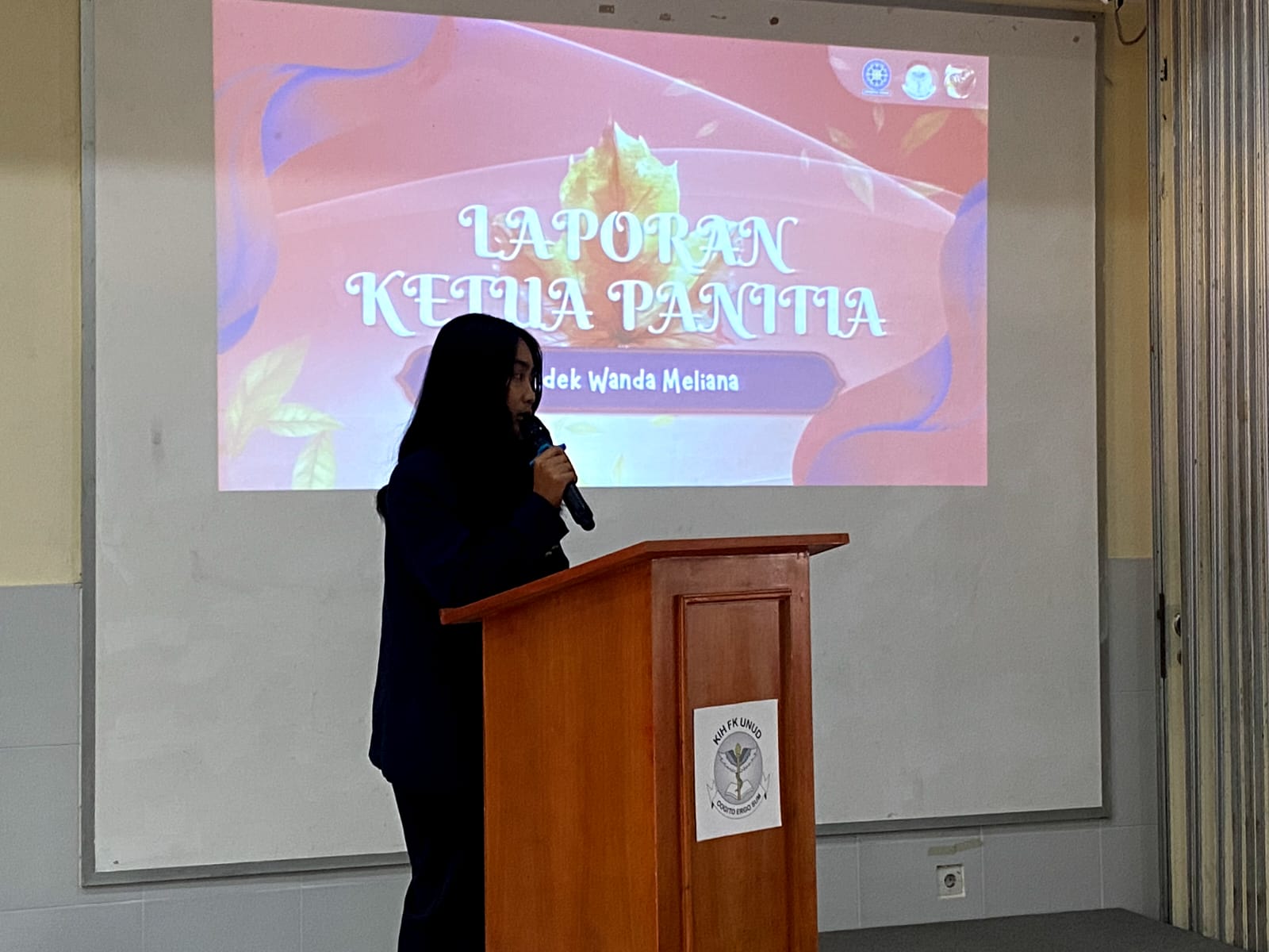 Acara dihadiri dan diawali dengan sambutan dari Ketua BEM FK Unud, Putu Labitha Parameswari Gustin, Ketua KIH FK Unud, Celine Aurelia Ahmad dan Pembina Kelompok Ilmiah Hippocrates, Dr. dr. Agung Wiwiek Indrayani, S.Ked, M.Kes., yang sekaligus membuka secara resmi.