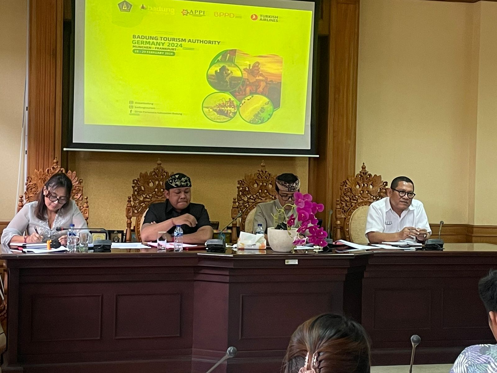 Dinas Pariwisata Kabupaten Badung berkolaborasi dengan Badan Promosi Pariwisata Daerah (BPPD) dan Aliansi Promosi Pariwisata Indonesia (APPI) menggelar sales mission ke Jerman. Hal itu diungkapkan Kepala Dinas Pariwisata Badung Nyoman Rudiarta, S.STP, MM, saat jumpa media, Kamis (14/3/2024). Hadir juga Ketua Komisi II DPRD Badung Gusti Lanang Umbara serta utusan dari BPPD Badung serta APPI.
