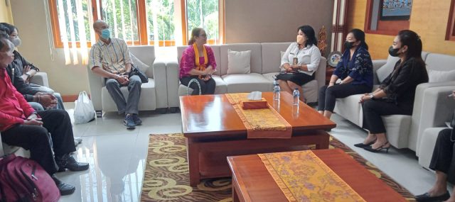 Hal ini dibahas dalam pertemuan Ketua TP PKK Kota Denpasar Ny. Sagung Antari Jaya Negara dengan Ketua FPPI Kota Denpasar Mulianingsih, SE dan Korwil Aliansi Kul Ind I Wayan Gede Parwata, Rabu (14/9), di Graha Sewaka Dharma Lumintang. Ny. Antari Jaya Negara yang didampingi istri Wakil Wali Kota Denpasar yang juga Ketua GOW Kota Denpasar Ny. Ayu Kristi Arya Wibawa mengatakan, pelaksanaan Lomba Masak Makanan Sehat itu dapat mengedukasi masyarakat perihal bagaimana memasak dan menyajikan makanan sehat.
