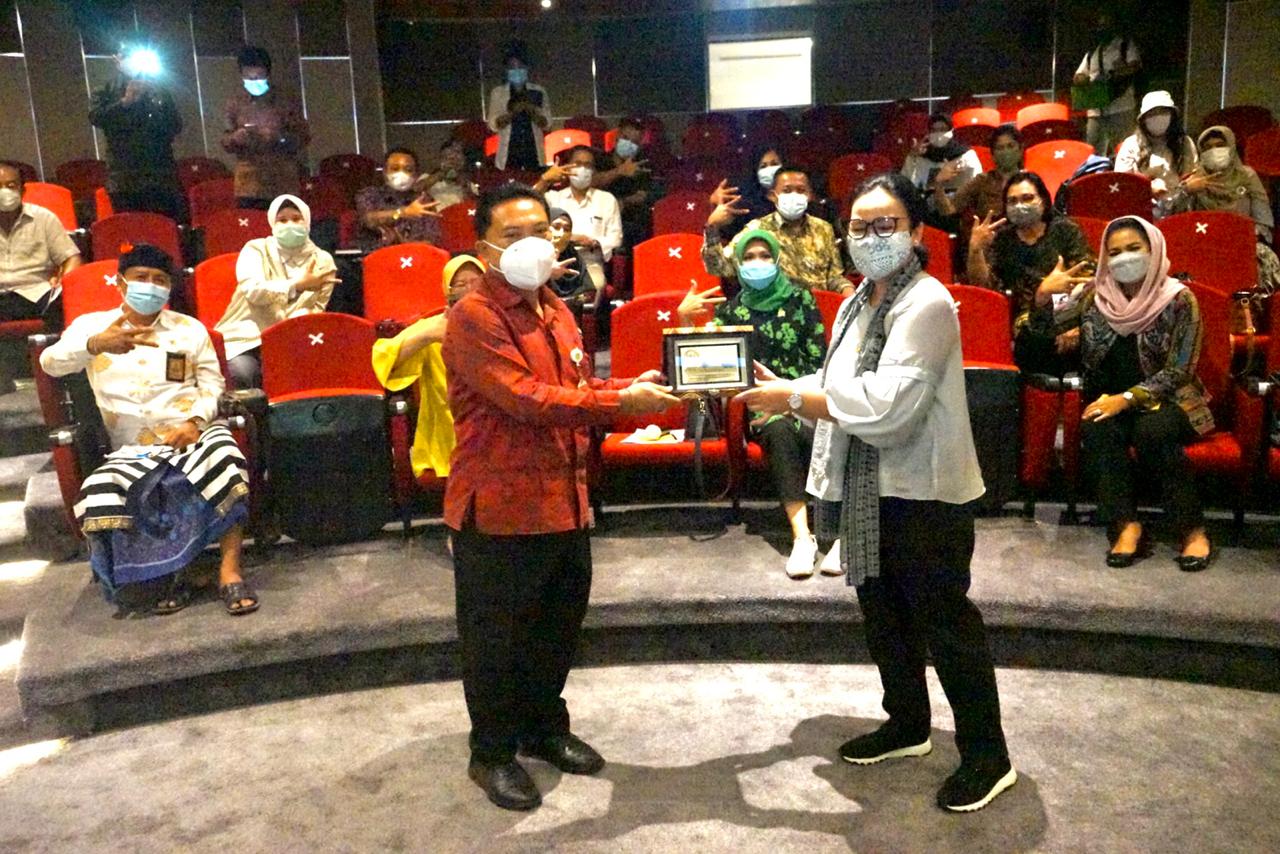 CENDERAMATA – Tukar-menukar cenderamata mengakhiri kunjungan Komisi X DPR RI di Pemkot Denpasar, Jumat (20/11/2020).