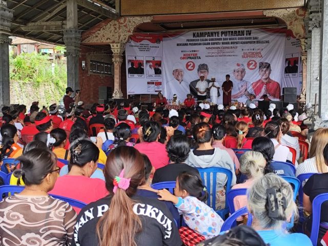 SAMPAH PLASTIK – Wayan Koster berkampanye di depan ribuan warga Desa Lemukih, Sekumpul, dan Galungan Sawan. Saat itulah, muncul ide generasi muda terkait sampah plastik.