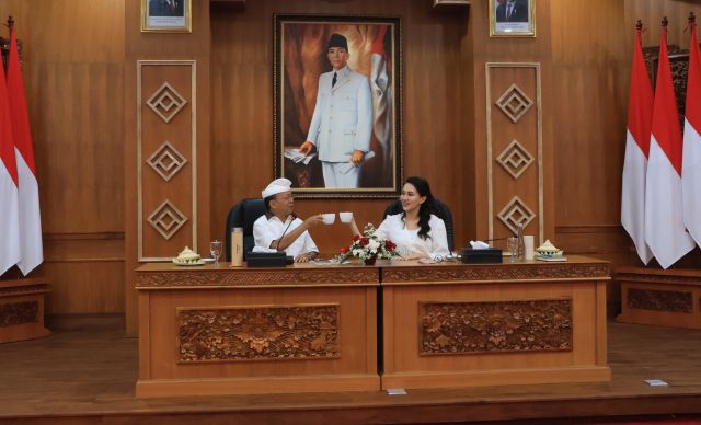 TERIMA SHERLY TJOANDA – Gubernur Wayan Koster menerima kehadiran Gubernur Maluku Utara, Sherly Tjoanda beserta jajaran pada Sabtu (Saniscara Kliwon, Uye) 12 Juli 2025 di Kertha Sabha, Jayasabha, Denpasar.