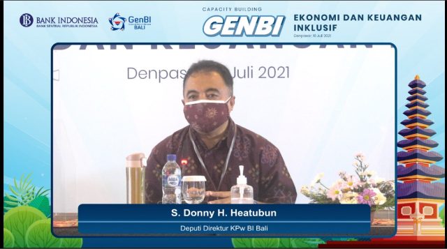 Kantor Perwakilan Bank Indonesia Bali, Jumat (16/7/2021) melakukan capacity building kepada komunitas mahasiswa penerima beasiswa Bank Indonesia, Generasi Baru Indonesia (Genbi) dari Universitas Udayana, Universitas Pendidikan Ganesha, Universitas Pendidikan Nasional dan Universitas Warmadewa yang mengambil tema “Ekonomi dan Keuangan Inklusif”.