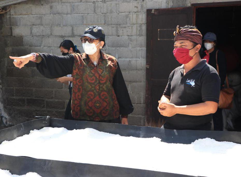 Ketua TP PKK Provinsi Bali Ny. Putri Suastini Koster mengharapkan garam berkualitas tinggi yang diproduksi petani lokal Bali, bisa dinikmati lebih banyak masyarakat, dan bukan hanya untuk lebih banyak diekspor ke luar negeri. “Garam kita luar biasa, orang luar negeri tahu benar kualitas garam kita, tapi kenapa malah yang kita konsumsi ialah garam yang kurang berkualitas,” ujar Ny. Putri Koster mempertanyakan, di sela kunjungannya ke tempat produksi garam ‘piramid’ di Desa Tejakula, Kecamatan Tejakula, Kabupaten Buleleng pada Minggu (4/4) pagi.