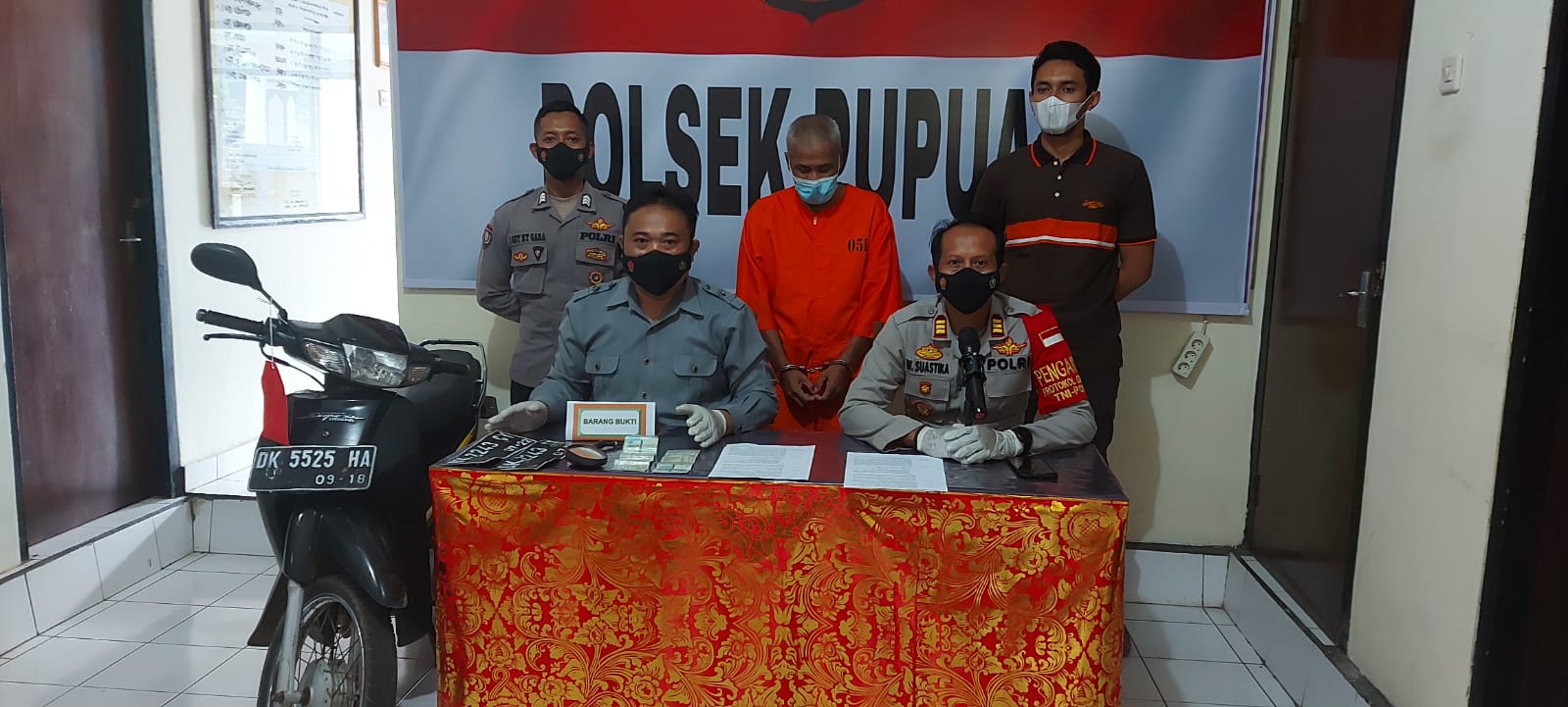 Polsek Pupuan mengungkap kasus curanmor (pencurian kendaraan bermotor) dengan kunci sepeda motor pemilik masih nyantol. Terkait kasus tersebut Kapolsek Pupuan, AKP I Wayan Suastika menyampaikan, kronologis jalannya pengungkapan berawal pada Rabu, 2 Februari 2022 pukul 08.30 wita, Polsek Pupuan menerima laporan dari korban berinisial IWN (63) asal Desa Pujungan, Pupuan, Tabanan.