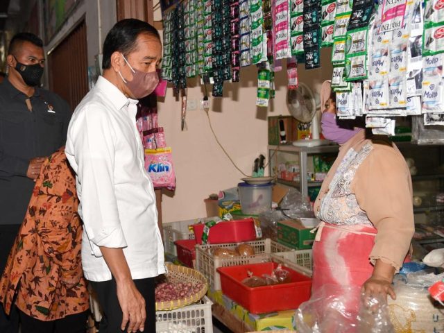 Setibanya di pasar, Presiden bersama Ibu Iriana langsung mengecek harga minyak goreng curah di Pasar Muntilan. “Ini berapa harganya Bu?” tanya Presiden kepada Titin Suryani pemilik kios yang berjualan sembako. “Kalau 1 liter Rp14.500, 1 kilo Rp15.000,” jawab Titin.