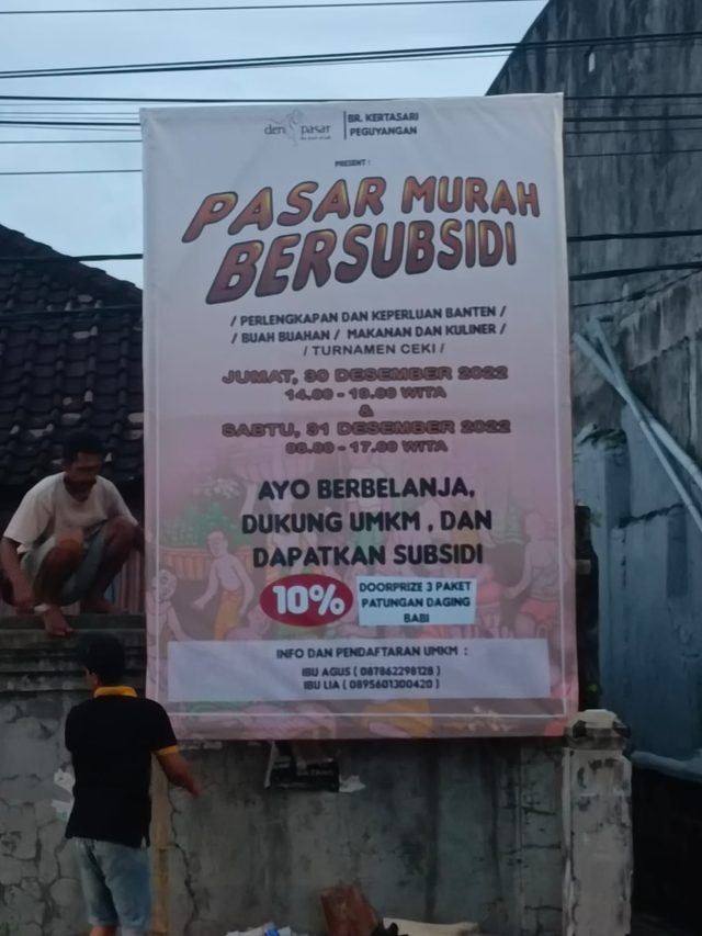 Banjar Kertasari Peguyangan di bawah komando Kelian Banjar Gusti Ngurah Sardula kembali menggelar pasar murah bersubsidi. Acara ini digelar serangkaian Hari Raya Galungan dan Kuningan mendatang.