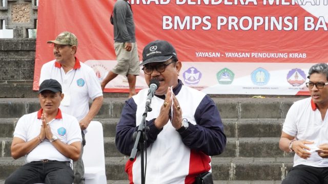 Wakil Gubernur Bali Prof. Tjokorda Oka Artha Ardana Sukawati melepas Kirab Merah Putih yang diselenggarakan oleh Badan Musyawarah Perguruan Swasta (BMPS) Provinsi Bali, di depan Kantor Gubernur Bali, Renon, Denpasar, Sabtu (Saniscara Umanis Medangkungan), 13 Agustus 2022.