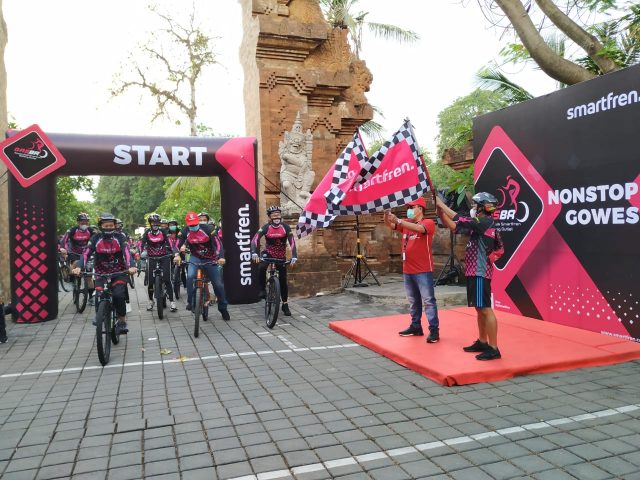 Pesepeda memeriahkan gelaran acara “gasbro” yang digelar salah satu provider telekomunikasi di Indonesia dilepas Sekda Kota Denpasar AAN Rai Iswara, Sabtu (24/10/2020) di Hotel Griya Santrian Sanur. Agenda yang bertajuk Gowes Asik Smartfren Bareng Outlet (Gasbro) dimaksudkan untuk memberikan dukungan kepada kebangkitan pariwisata Bali khususnya Denpasar untuk dapat bergairah kembali di tengah wabah pandemi saat ini.