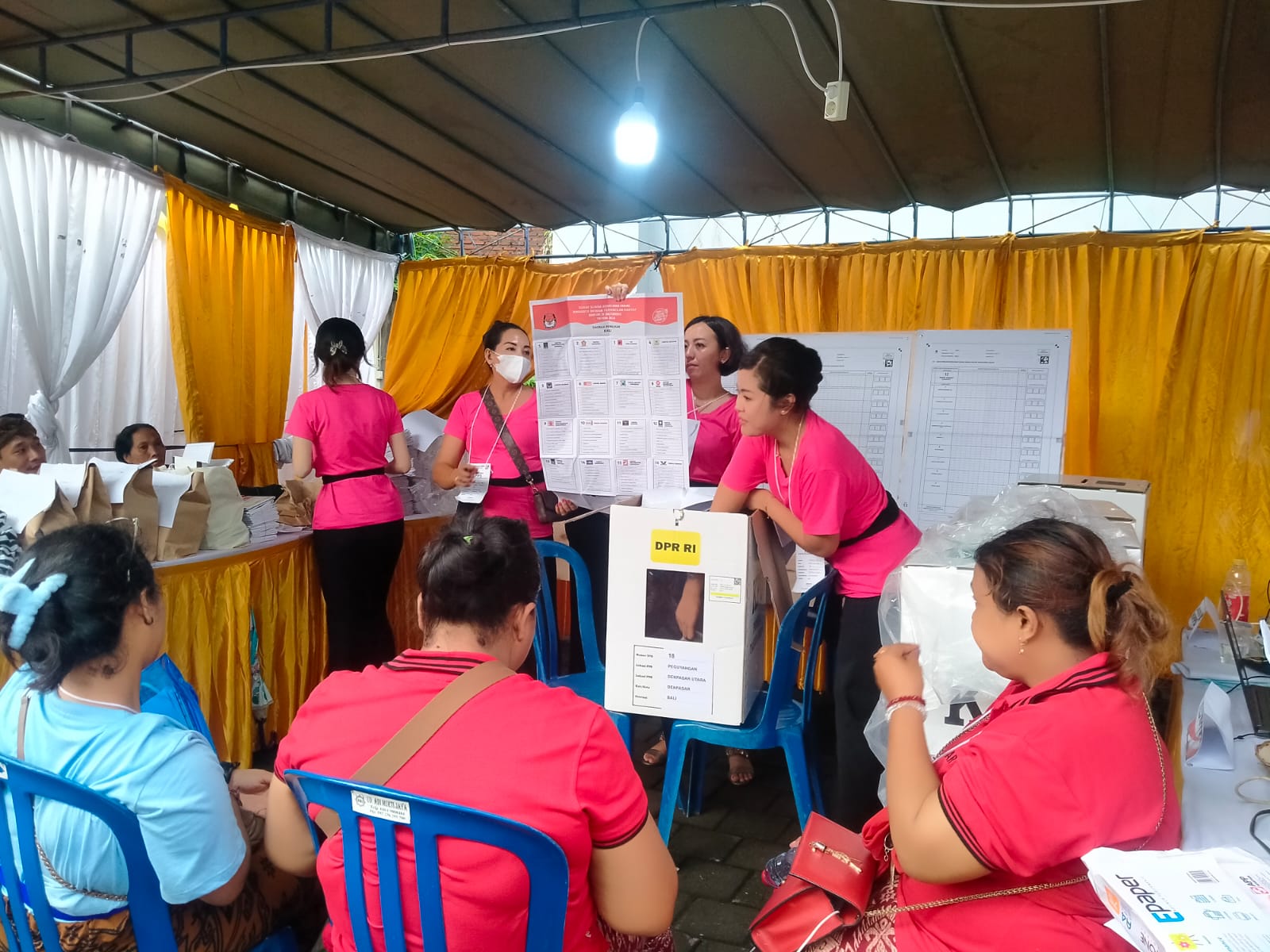Hingga berita ini disiarkan, proses penghitungan suara untuk DPR RI, DPRD Bali dan DPRD Kabupaten/Kota sedang berlangsung. Para KPPS perempuan ini tetap semangat dan fokus melaksanakan tugasnya. (sar)