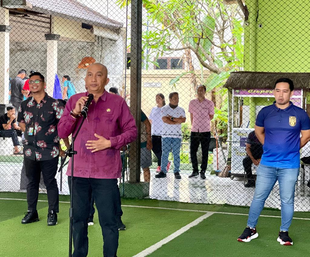 LIGA FUTSAL – Kepala Dinas Ketenagakerjaan dan ESDM Provinsi Bali Ida Bagus Setiawan membuka Liga Futsal Mayday 2023, Rabu (12/4/2023).