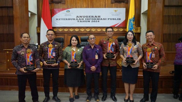Komisi Informasi (KI) Provinsi Bali menyerahkan Anugerah Keterbukaan Informasi Publik kepada lembaga publik di lingkungan Pemerintah Provinsi Bali yang digelar di Gedung Wiswa Sabha Utama, Kantor Gubernur Bali Denpasar, Selasa (10/12). Lima badan publik di lingkungan Pemerintah Kota Denpasar meraih Anugerah Keterbukaan Informasi Publik Tahun 2024.