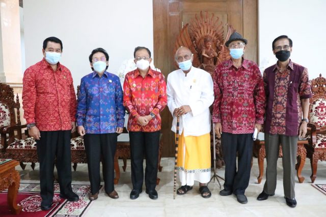 MENDUKUNG – Pengurus Listibiya saat bertemu Gubernur Koster sangat mendukung pembangunan Pusat Kebudayaan Bali.